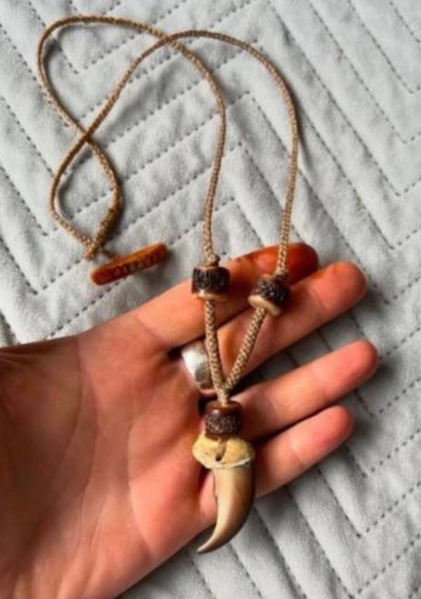 Its mighty Brown Bear claw, from antique taxidermy rug, and antique Tibetan beads from yak bone with beautiful patina. Alongside all this, its complicated cordage work that took many hours. Weeks if not a month in labour while putting this epic piece together 🐻
