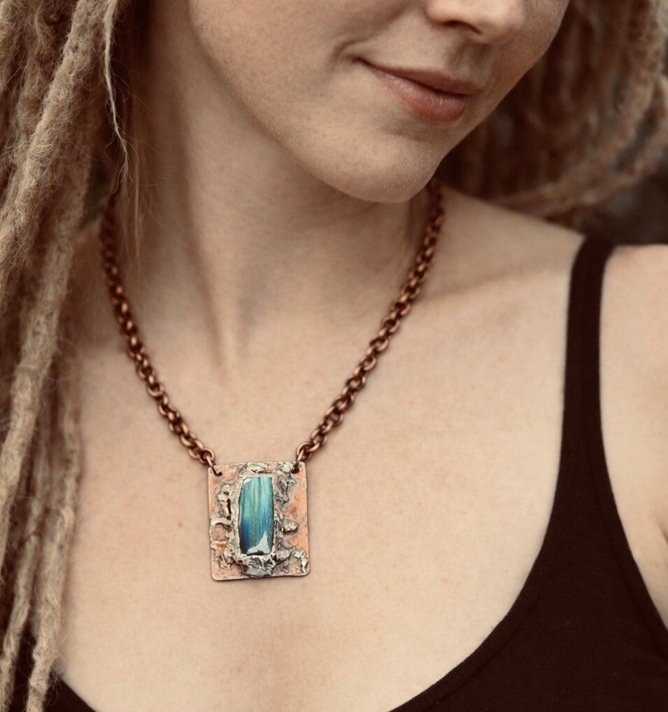 #reclaimedmetal #sustainablejewelry #handmadejewelry #copperjewelry #labradorite