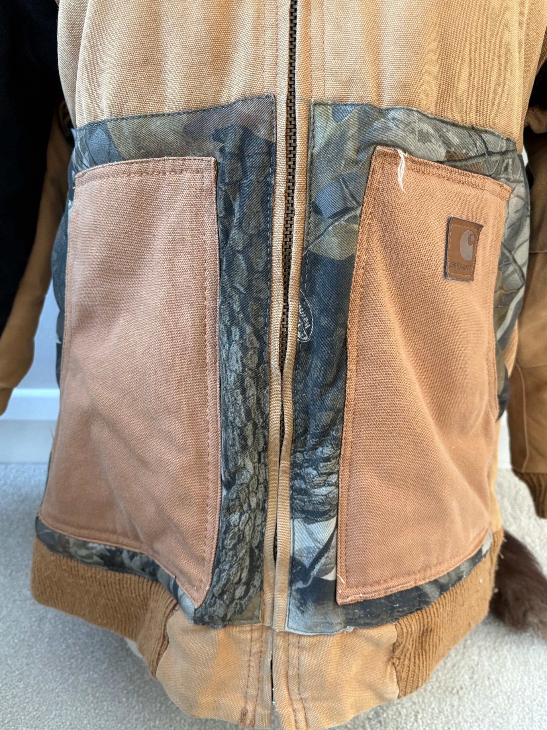 Vintage Carhartt Jacket w/ Genuine Fox Fur Hide – One-of-a-Kind Statement Piece